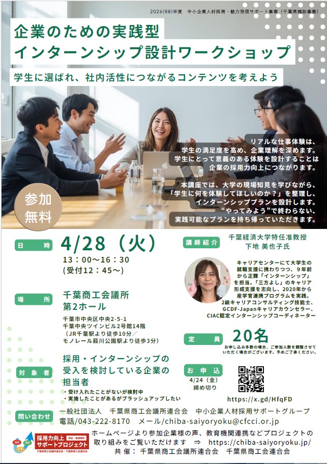 【4/28開催】企業のための実践型 インターンシップ設計ワークショップ お申し込みはこちら2026年4月28日(火)